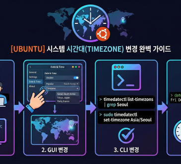 LinuxTechnology[Ubuntu] 시스템 시간대(Timezone) 변경 완벽 가이드amond3 weeks ago2025-12-19150. 환경 명시 OS 버전: Ubuntu 18.04.4 LTS (Ubuntu 20.04/22.04 LTS 공통 적용 가능) 권한: sudo 권한이 있는 일반 사용자...