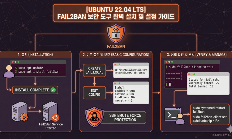 Bash# 특정 IP의 차단을 수동으로 해제합니다.sudo fail2ban-client set sshd unbanip <UNBAN_IP_ADDRESS> - Tip 2: 로그 확인Fail2Ban이 어떤 IP를 왜 차단했는지 보려면 로그를 확인하세요.